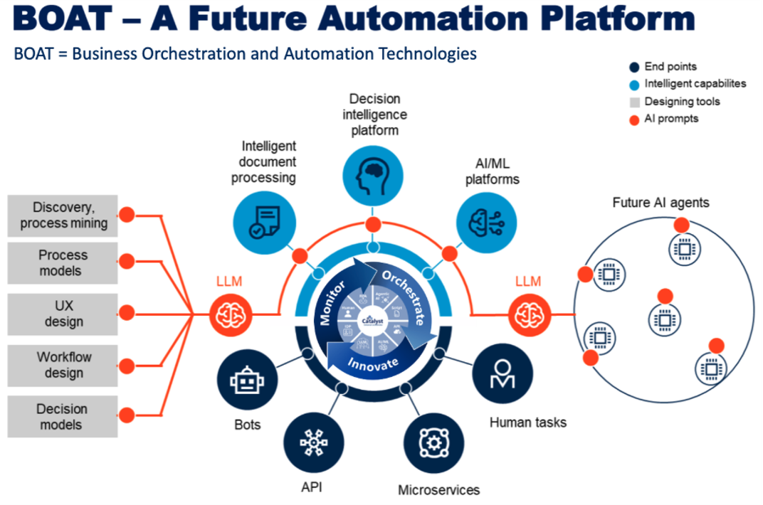 The core of BOAT is orchestration. The BOAT concept focuses on embedding AI prompting into the technology stack. This strengthens familiar technologies such as bots, APIs, and microservices.